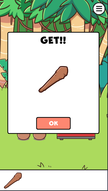 再度、棍棒を使うと、もう一つの木の実が落ちてくるので入手できる。クリア。