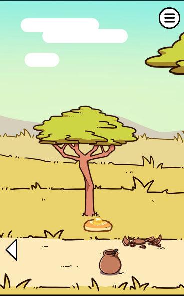 攻略・答え 右画面に移動し、壺を壊す。更に右画面に移動する。 木の棒を入手する。 木の下の穴に木の棒を使うとネズミがでてくる。壺を壊してからネズミをタップする。 左に移動し、パンケーキを入手してクリア。