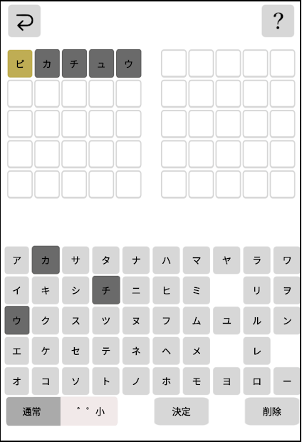 また、このアプリの特徴として、文字がその行に含まれているかどうかをヒントとして得ることができます。