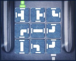 先程入手した「メモ」をヒントに、三角形のボタンを全て押す。 残った文字が「ミギカラオセ」となり、「右から押せ」だということが分かる。 押したボタンの形を見ると、右から「平行四辺形、三角形、菱形」であることが分かる。 | ![]() |