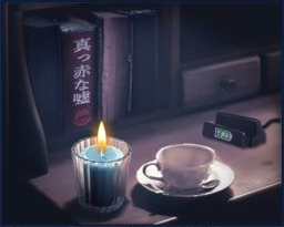 「紙の切れ端」2つを組み合わせる。 事務室の左の机にある「真っ赤な嘘」から 暗号の赤文字を無視すると、「3751」が導き出される | ![]() |