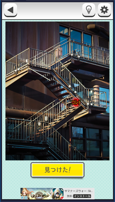 どんなゲーム? これ変じゃない? そんなよく見ると何かがおかしい画像を指摘しよう! 対応機種:Android / iphone リリース:2018年1月19日 難易度:★★☆☆☆ 答え FILE.26 二次会真っ最中 問題解答 FILE.27 プラットホームにて 問題解答 FILE.28 あひるボート 問題解答 FILE.29 階段の秘密 問題解答 FILE.30 電卓と小銭 問題解答