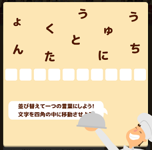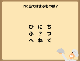 6.?に当てはまる数字は? 【答え】30 7.これなんだ? 【答え】時計 8.?に当てはまるものは? 【答え】ぬ 9.なんと読む? 【答え】カンニング 10.なんと読む? 【答え】スタートライン 最終問題 【答え】たんとうちょくにゅう