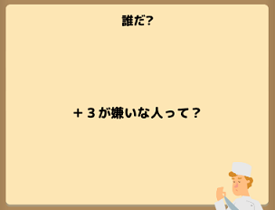6.誰だ? 【答え】サンタさん 7.なんと読む? 【答え】ペットボトル 8.どんな職業? 【答え】歯医者 9.この乗り物は? 【答え】飛行機 10.ここはどこ? 【答え】富山県 最終問題 【答え】リクライニングチェア
